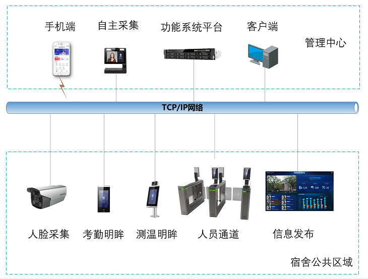 方案概述 一、項(xiàng)目背景目前大部分學(xué)校采用人工考勤的方式,對(duì)宿舍的學(xué)生進(jìn)行考勤和簽到,這種方式存在著很大的漏洞隱患,依靠人腦記憶有限,依靠人眼分辨不夠準(zhǔn)確,人員輪班值守人力成本較高,這些問(wèn)題都制約了學(xué)校宿舍安全防范水平,因此亟需依靠科技手段來(lái)提高安全防范水平,提高宿管考勤的效率和可靠性,降低宿管考勤的人力成本。 二、系統(tǒng)架構(gòu)![]() 三、系統(tǒng)功能