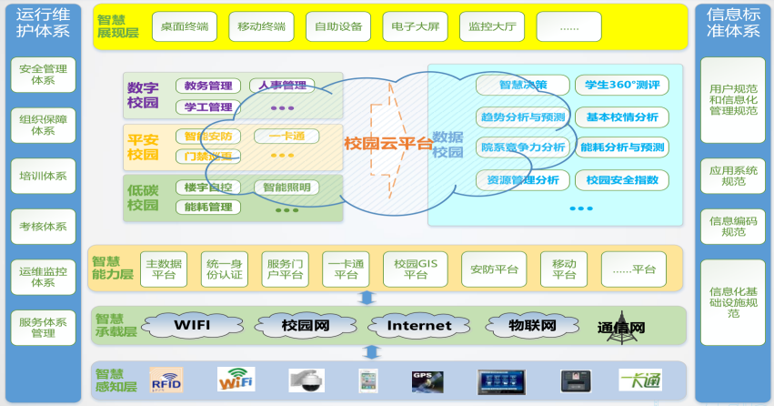 方案概述 一、項目背景學校傳統(tǒng)的管理模式導致學生、教師身上攜帶的證件實在太多了,增加了管理難度的同時,也讓教師學生的壓力日漸增大。校園管理系統(tǒng)的引入,創(chuàng)造了新的管理模式和電子化的校園,解決了傳統(tǒng)模式中存在的,浪費資源,繁瑣管理使用困難,等褚多問題。 二、系統(tǒng)架構![]() 三、方案概述校園管理系統(tǒng)指的是以物聯網為基礎的智慧化的校園工作、學習和生活一體化環(huán)境,這個一體化環(huán)境以各種應用服務系統(tǒng)為載體,將教學、 科研、管理和校園生活進行充分融合。 校園管理系統(tǒng)的內涵體現在以下幾個方面: 1)環(huán)境智慧:無處不在的校園網絡,無處不在的環(huán)境感知,無處不在的交互入口,無處不在的校園服務,無處不在的智慧體驗。 2)資源智慧:優(yōu)質教育資源充分共享,個性化學習資源自適應定制推送。 3)方法智慧:全方位的立體化的智慧型的教學應用服務方法、科研應用服務方法、管理應用服務方法、生活應用服務方法等。 三、主要功能