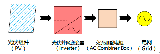 上面是一個(gè)光伏系統(tǒng)的簡(jiǎn)圖,光伏組件發(fā)出的直流電(DC)經(jīng)過(guò)光伏逆變器逆變成交流電(AC)進(jìn)入電網(wǎng),那么整過(guò)過(guò)程中光伏逆變器只是把直流電變成交流電,俗稱的DC/AC的比值就是光伏組件的安裝量和光伏并網(wǎng)逆變器最大交流輸出的比值。