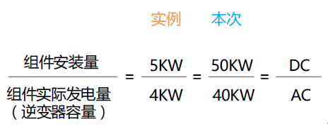 而大家常說(shuō)的配比值指的是DC/AC,也就是光伏組件的功率/光伏逆變器的功率,那我們首先來(lái)看下這個(gè)比值是什么。