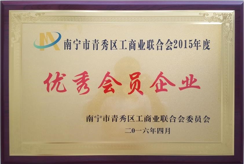 廣西貝森科技有限公司榮獲南寧市青秀區(qū)工商業(yè)聯(lián)合會(huì)授予的2015年度“優(yōu)秀會(huì)員企業(yè)”稱號(hào)