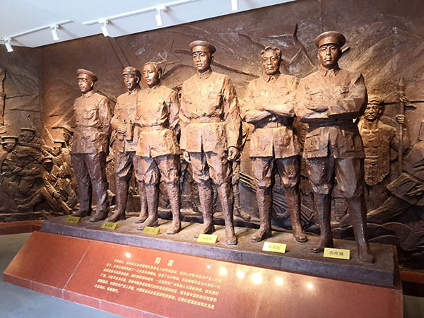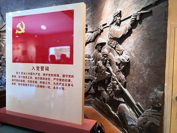 在紀念館內,全體黨員在革命烈士雕像前重溫入黨誓詞,以此致敬先烈,向先烈學習。