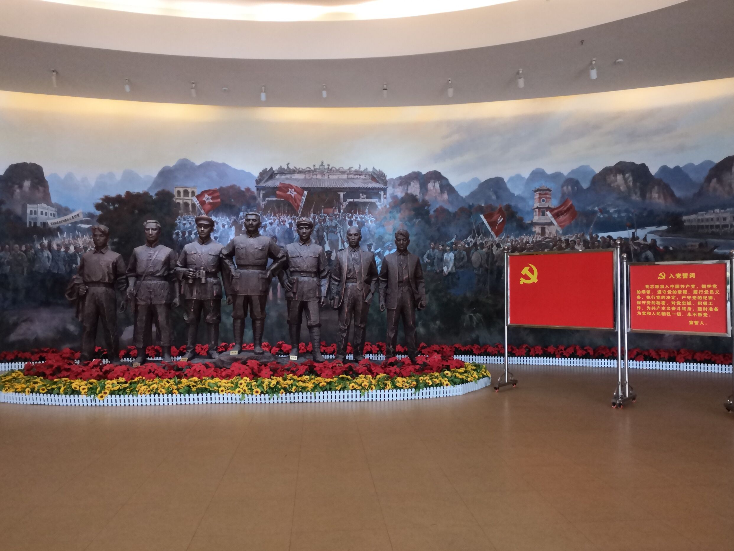 走進(jìn)廣西革命紀(jì)念館,在七位革命偉人雕塑前,大家莊嚴(yán)宣誓,重溫入黨誓詞,接受革命傳統(tǒng)教育。